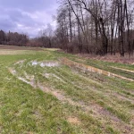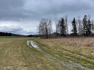 Zumindest war das unser Vorhaben. Allerdings erblicken wir auch die kleinen Seen, die sich auf den Wiesen nahe der Strem unten gebildet hatten. Zunächst hatte es den Anschein, als seien diese sowieso ein Stück tiefer liegend als unser auserkorener Weg. Jedoch stellte sich in weiterer Folge heraus, das auch der Weg stellenweise ganz schön durchnässt bis überflutet war.