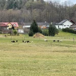Zurück auf meiner Route blieb es zunächst durchaus trocken und begehbar. Hin und wieder trat ich mit dem typischen „Schmatzen“ auf Gras mit Wasser darunter. Sofern es dabei blieb, sollte aber eine Begehung kein Problem sein. Halbhoch links, am Hang über mir, graste gerade gemütlich eine Herde Schafe in ihrer Koppel. Und zu meiner Rechten lag das brachliegende Sumpfgebiet entlang der Strem.