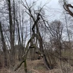 Im Gegenteil, als wollte er einen Durchgang frei lassen, hatte sich der Stamm bei etwa drei Metern Höhe, mit seiner Krone über den Weg, abgeknickt. Und lies gerade mal so viel Platz frei das ein Mensch aufrecht hindurch gehen konnte. Dieses Angebot nahm ich natürlich dankend an. Aber nicht ohne skeptisch auf den Stamm über mir zu achten, um beim geringsten Geräusch oder Bewegung nach vorn zu sprinten.