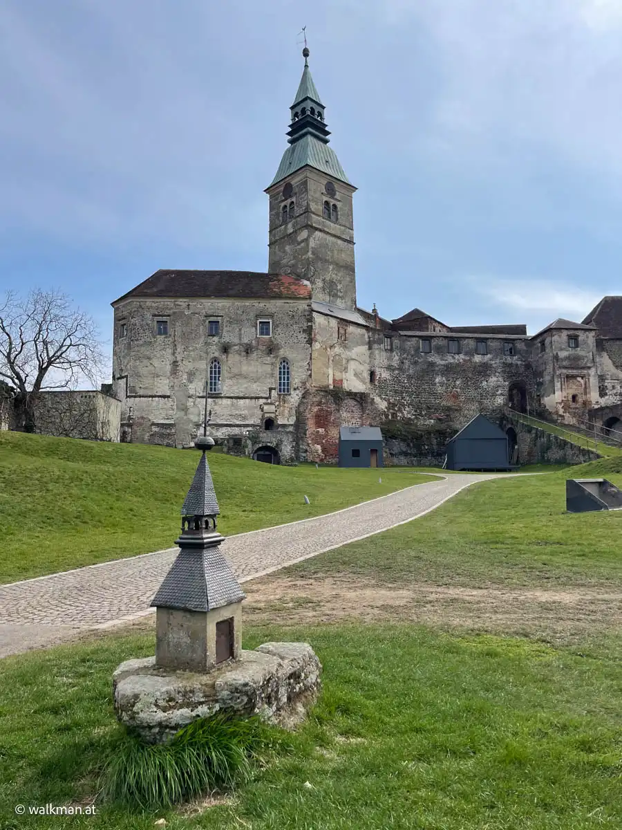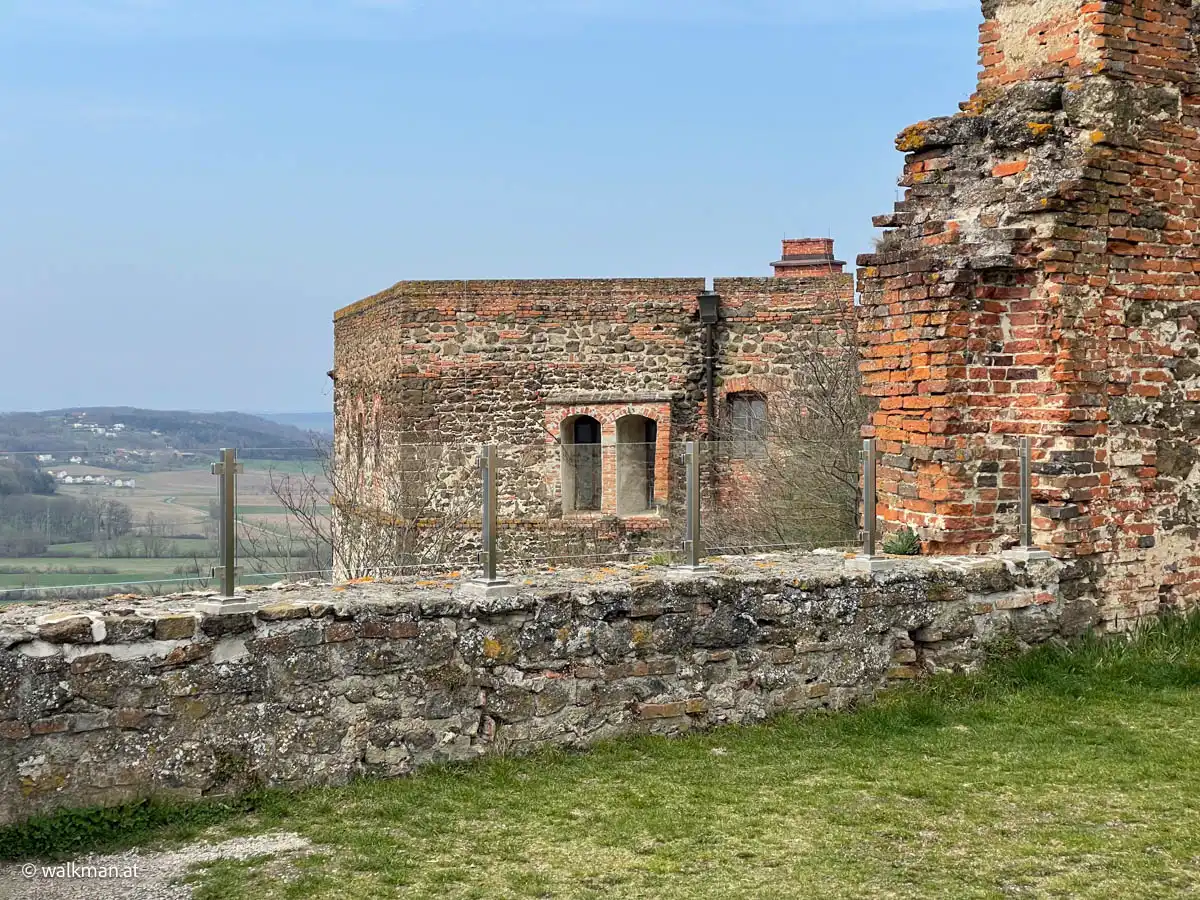 Alternativ gibt es hier auch genügend Aussichtsmöglichkeiten in alle Himmelsrichtungen. Gerade das macht ja die Burg Güssing mitunter so genial. Der Ausblick von hier oben ist wirklich schön. Aber natürlich ist der Bereich hier oben auch ziemlich anfällig für Winde aus allen Richtungen. Das Wetter bei der Planung zu berücksichtigen ist sicher kein Fehler.