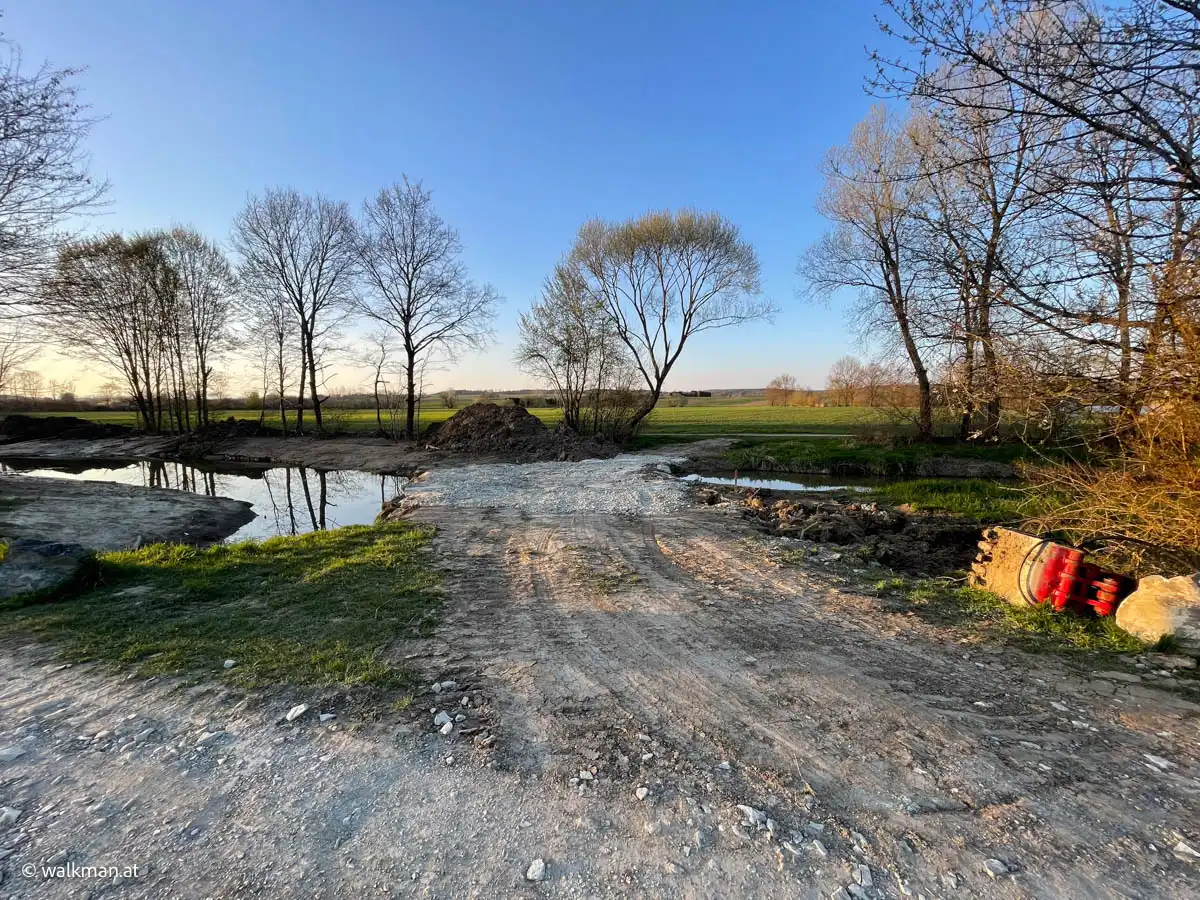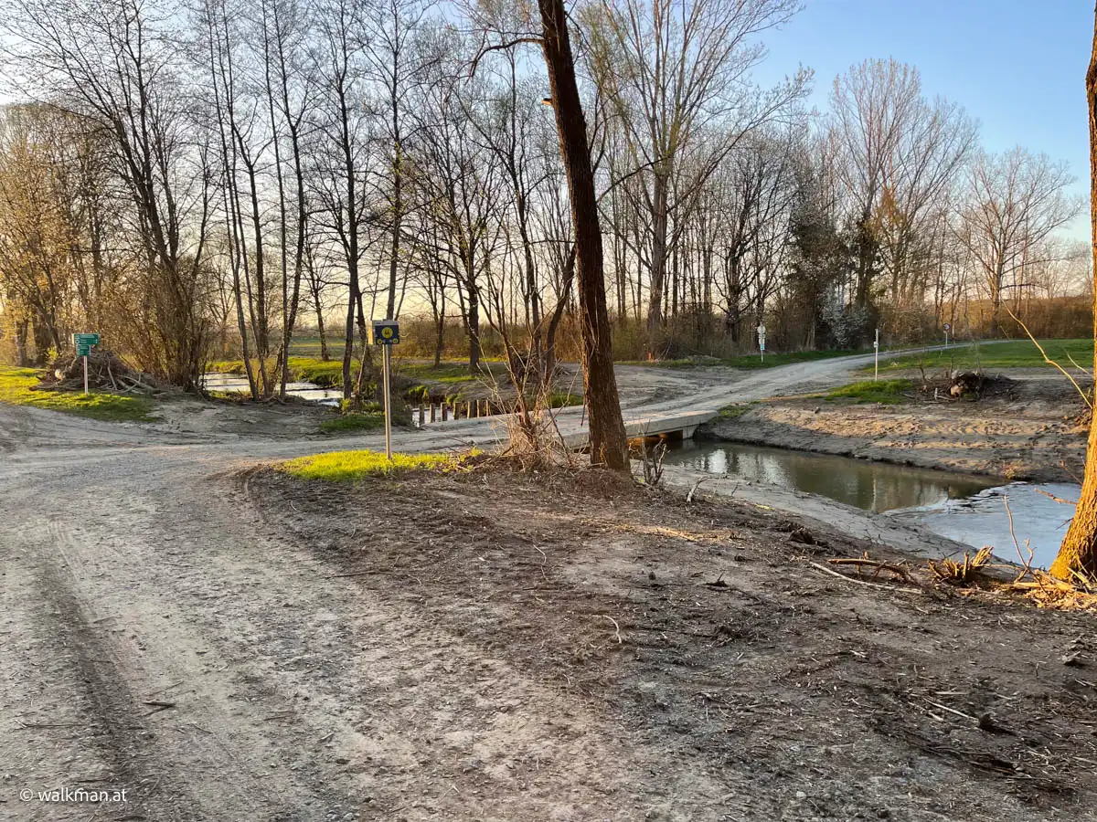 So wie es aussieht, ist die Brücke nun endgültig Geschichte. Und wird nun von einer Art „Furt“, die überflutet werden darf und soll, ersetzt. Finde ich grundsätzlich gut. Bei viel Regen und matschigem Untergrund geht sowieso kaum jemand spazieren. Also warum nicht gleich diese relativ günstige und servicefreundliche Lösung? Perfekt.