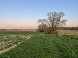 Dieser Weg wird nicht so stark frequentiert. Mitunter ein Grund, weshalb hier das Gras höher steht und kaum ein „echter“ Feldweg zu erkennen ist. Wohl aber ein Wiesenweg. Das Begehen bereitet jedenfalls keine Probleme. Einzig an zwei Stellen hat Wasser hier aktuell den Weg überflutet, was aber mit einem Ausweichen über das Feld nebenan, auch kein Hindernis darstellt.
