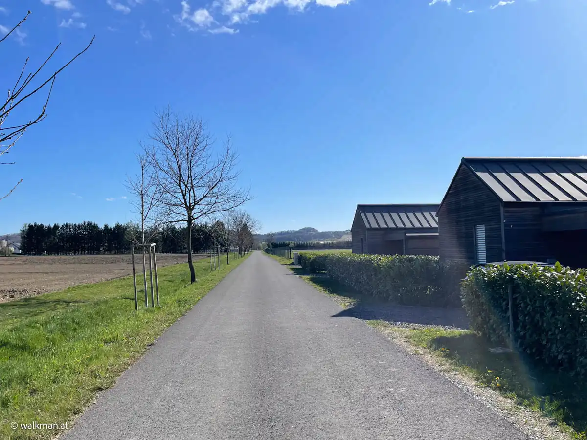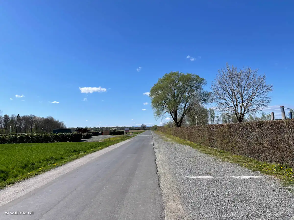 Angekommen am Wiesenweg führt dieser nun weiter nach Süden bis er in eine asphaltierte Straße mündet, die uns dann wieder zum Ausgangspunkt zurückführen sollte. Jetzt wird es wieder angenehm. Vor allem auch, weil wir nun den Wind im Rücken, statt im Gesicht, haben.
