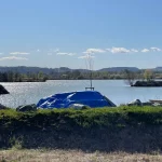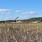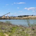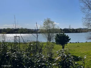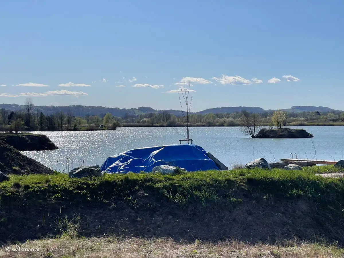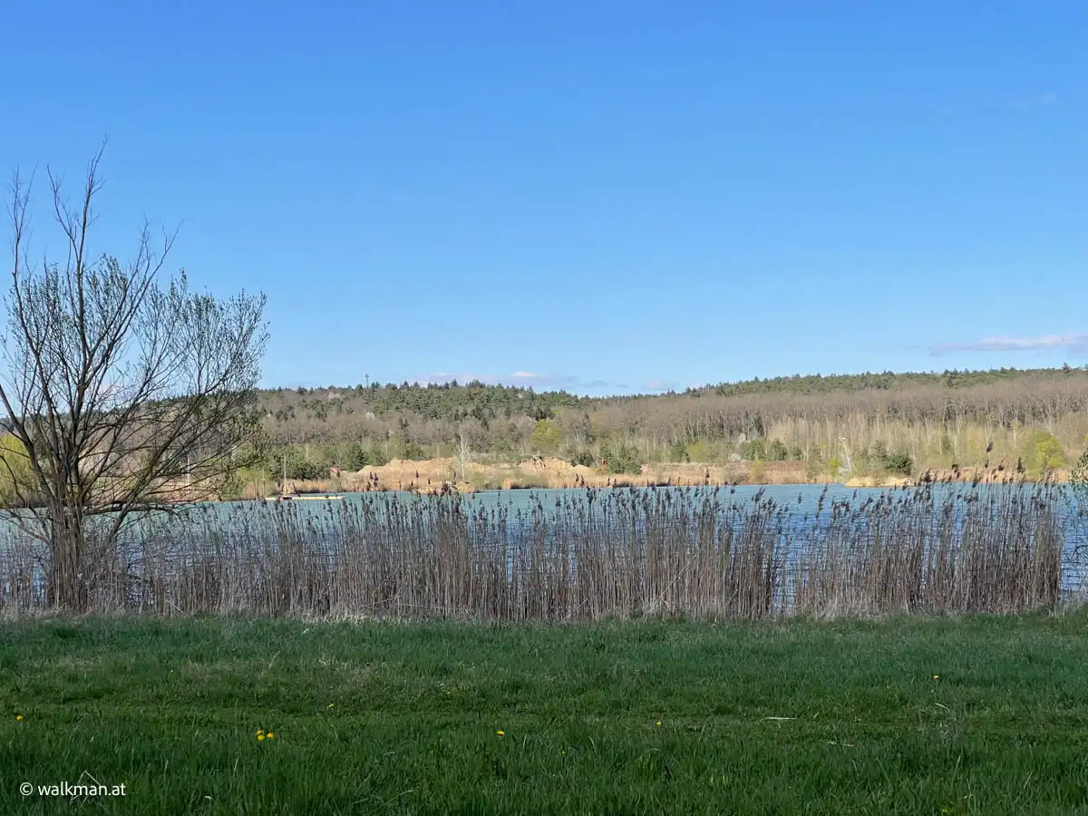 Rechts von uns zieht der Badesee vorbei. Und zu unserer Linken das riesige Areal des hier ansässigen Schotterwerks. Das sogar einen kleinen eigenen See hat. Beides ist mir natürlich einige Fotos wert.