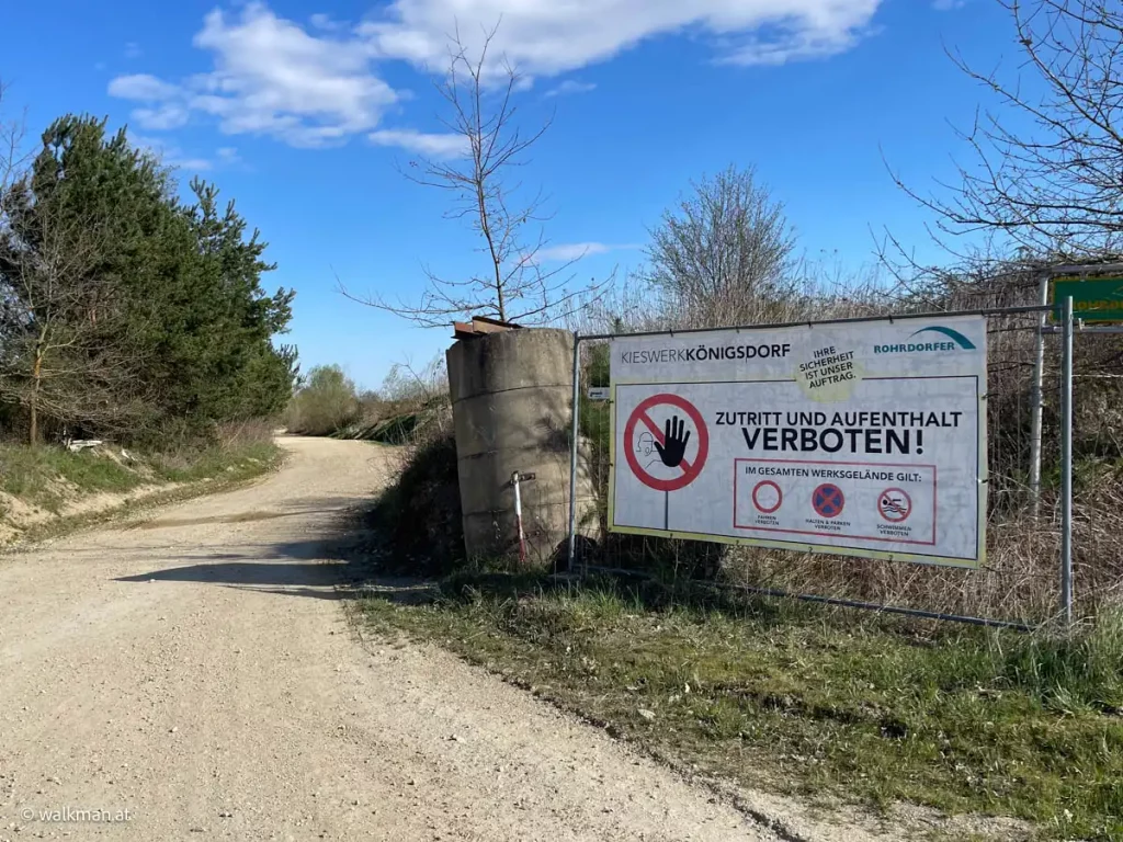 Vom Startpunkt weg, gehen wir zunächst die Straße, die beim Freibad des Naturbadesees vorbei führt, weiter. Bis nach vor zur ersten Möglichkeit, um nach rechts abzubiegen. Hier wandelt sich der Untergrund von Asphalt zu Schotter, ist aber weiterhin angenehm zu gehen.