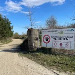 Vermutlich war das Schild, das auf einem flexiblen Zaun montiert ist, vorher woanders positioniert, und wurde dort einfach nur abgestellt? Keine Ahnung.